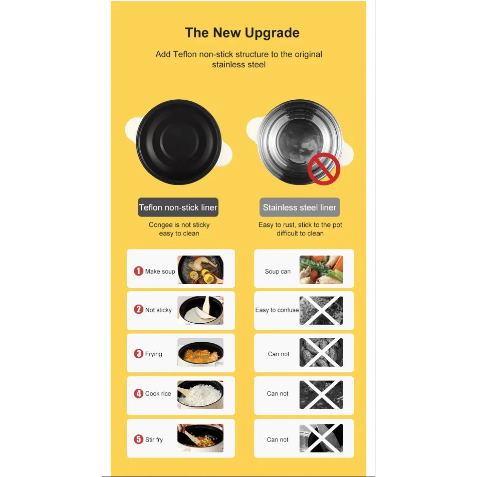 Fundo do pote antiaderente: O fundo do pote antiaderente: O fundo do pote é feito de material antiaderente, facilitando a limpeza e evitando que os alimentos grudem.