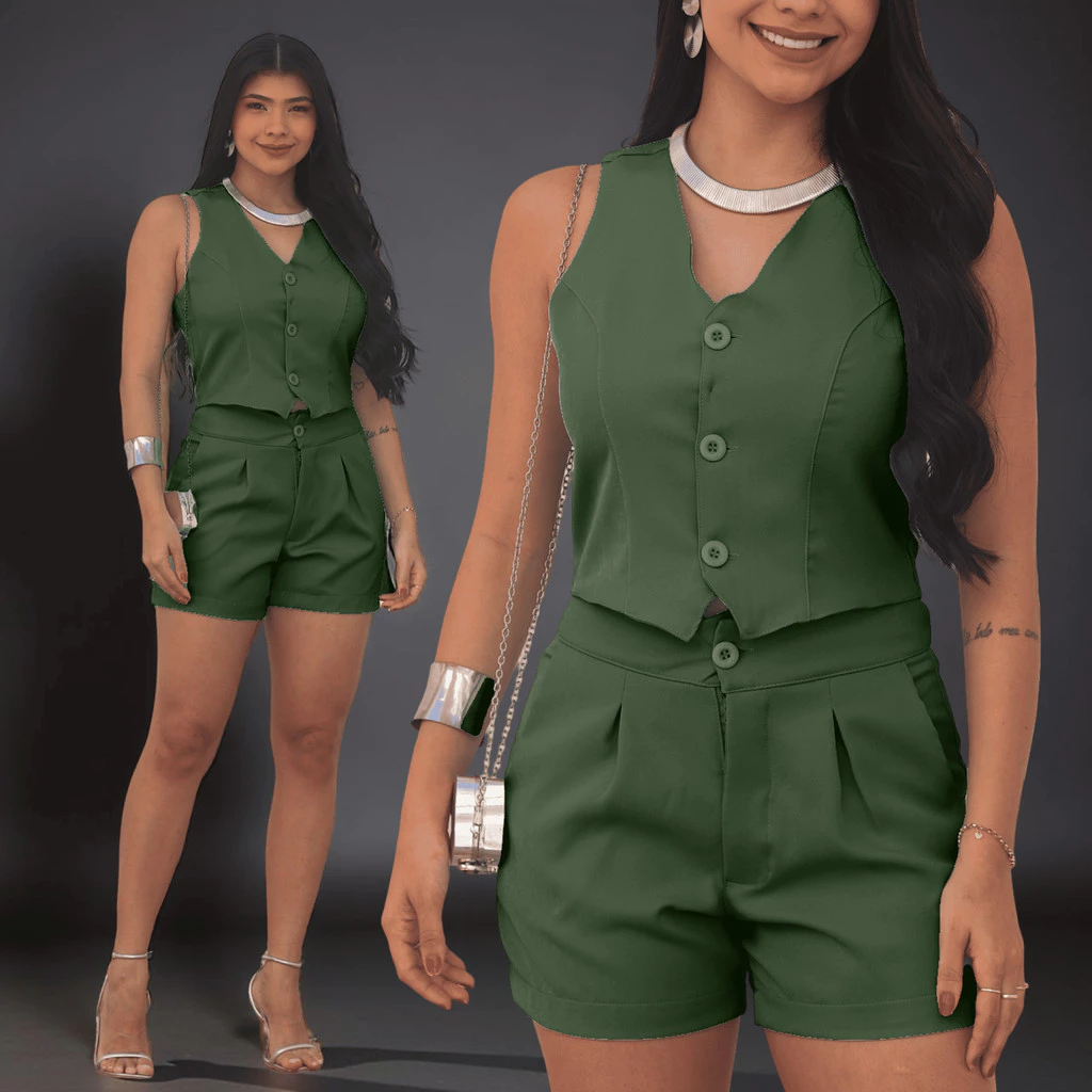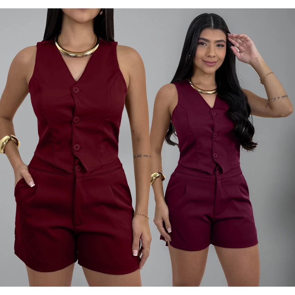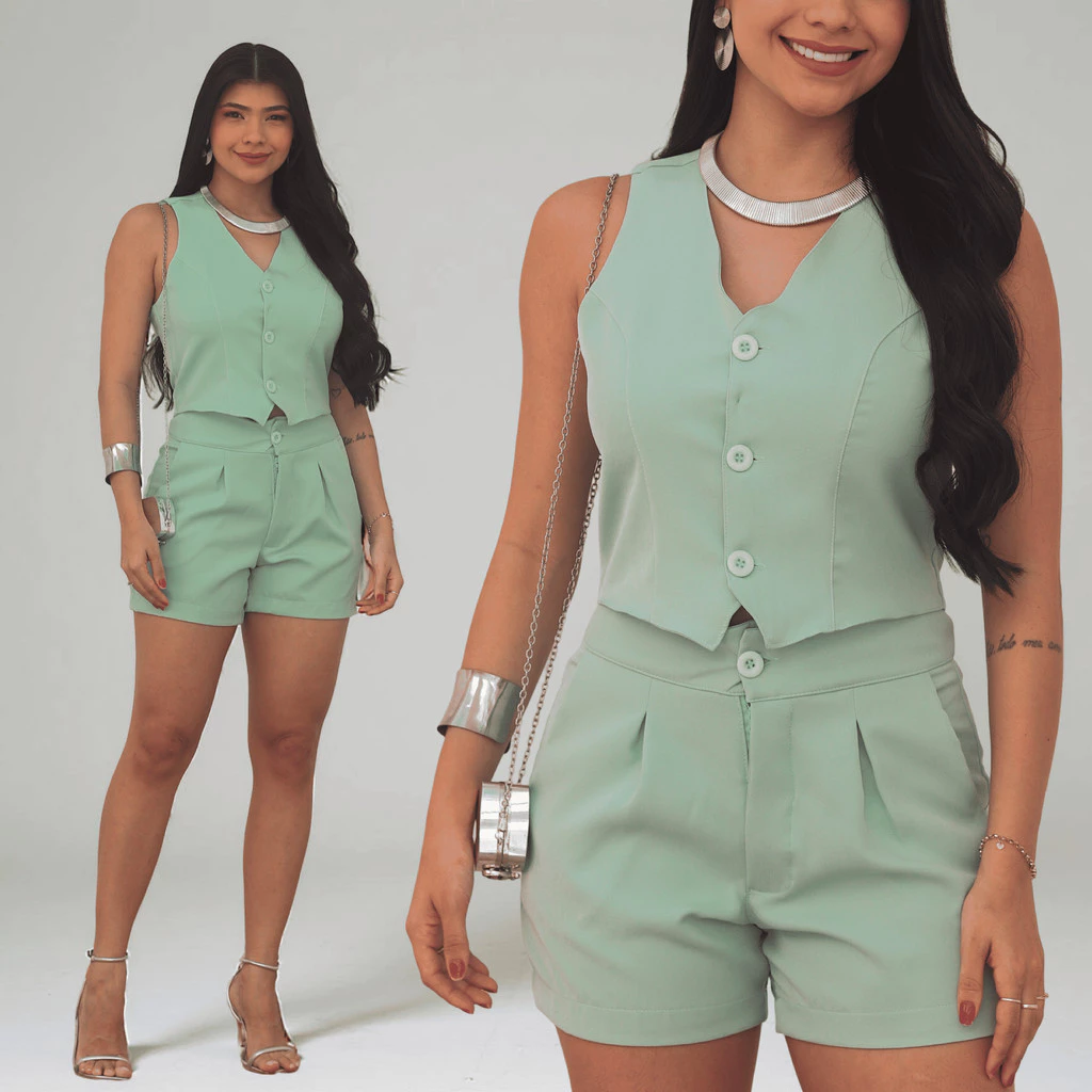 Esse é o nosso CONJUNTO COLETE e SHORT. Uma modelagem perfeita que deixa toda mulher elegante.
