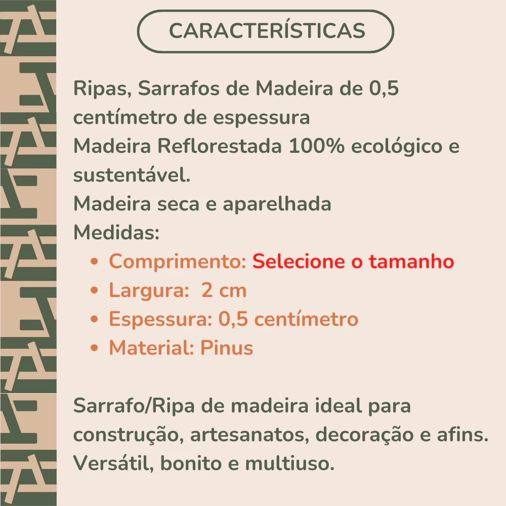 📐Medidas de cada Ripa: 0,5 x 2 x Selecione na Variação (A x L x C)